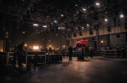 Production logistics for staging, lighting, and show-critical equipment, coordinating technical freight and infrastructure to support seamless live entertainment execution.